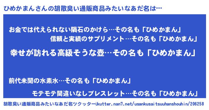 | 男性向けラノベタイトル風あだ名 | 『はたらくひめかまんさま!』 |