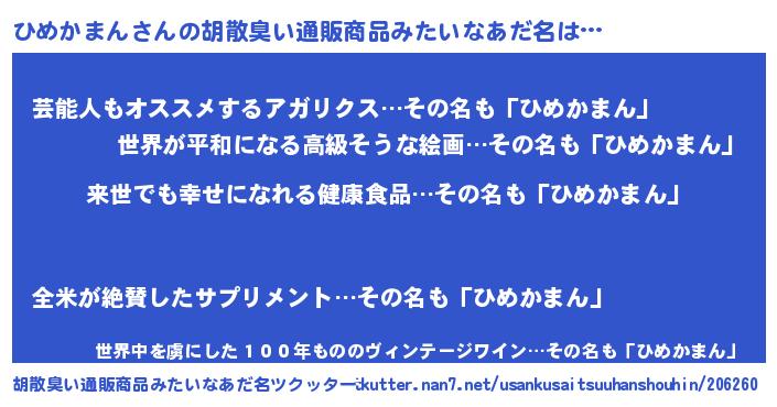 | 意味不明あだ名 | 『永久保存ひめかまん』『自称ひめかまん』 |