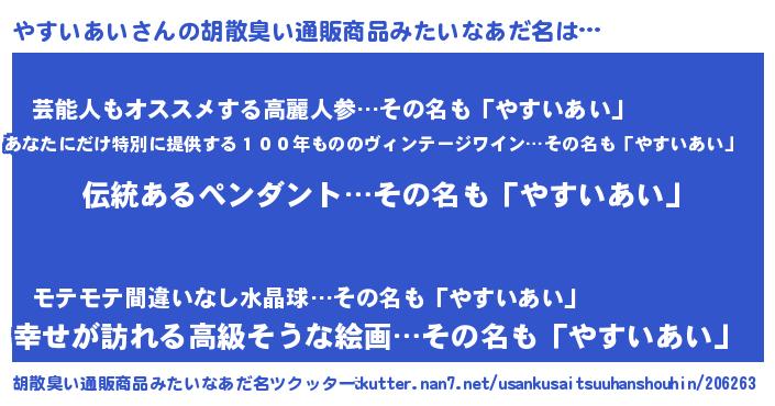 | 料理風あだ名 | 『やすいあいごはん』 |