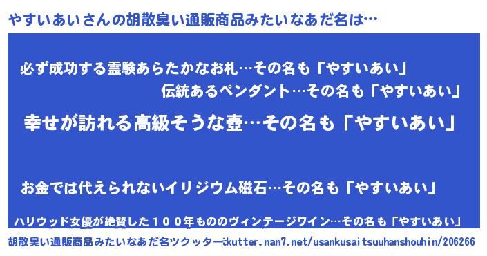 | 意味不明あだ名 | 『やすいあいフォーエバー』 |