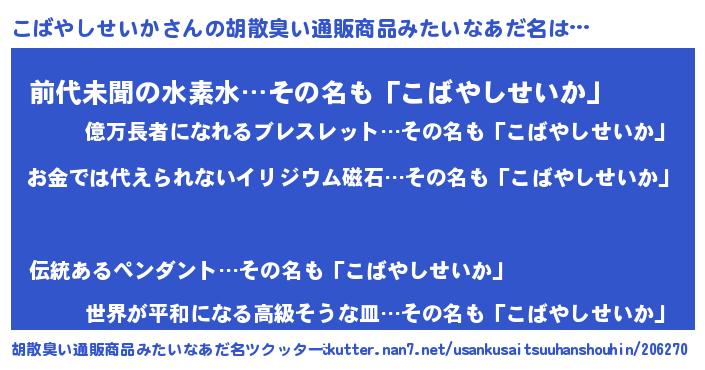| 女子向けラノベタイトル風あだ名 | 『こばやしせいか恋絵巻』 |