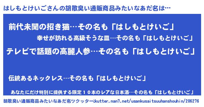 肩書あだ名 | 『はしもとけいご閣下』 |
