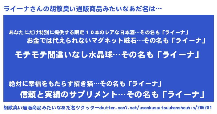 男性向けラノベタイトル風あだ名 | 『転生したらライーナだった件』 |