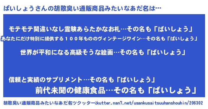 | 意味不明あだ名 | 『ばいしょうフォーエバー』 |