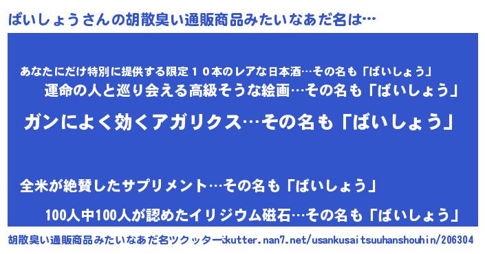 | 男性向けラノベタイトル風あだ名 | 『バイショウスレイヤー』 |