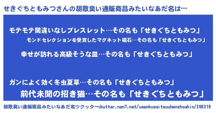| 意味不明あだ名 | 『せきぐちともみつフォーエバー』 |