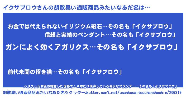 | 恥ずかしいあだ名 | 『イクサブロウデラックス』『イクちん』 |