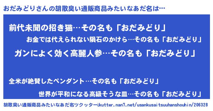 ヘコむあだ名 | 『おだみどり(小並感)』『レバニラ』 |