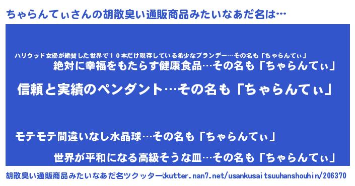 意味不明あだ名 | 『とにかく怪しいちゃらんてぃ』 |