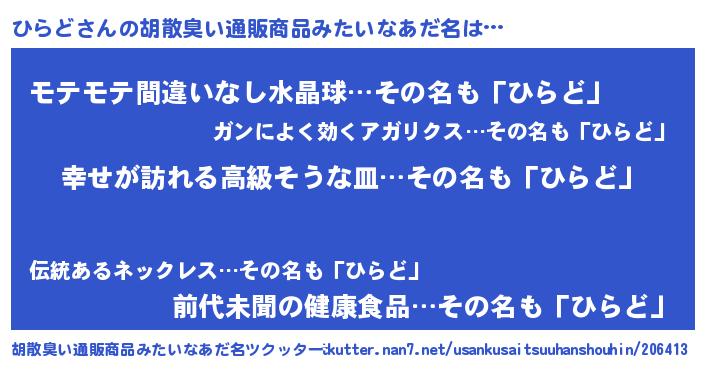 | 男性向けラノベタイトル風あだ名 | 『やはりひらどの青春ラブコメはまちがっている 』 |