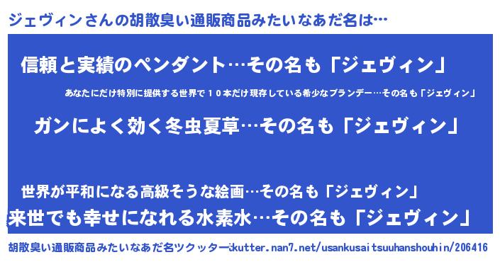 | 男性向けラノベタイトル風あだ名 | 『ジェヴィンスレイヤー』 |