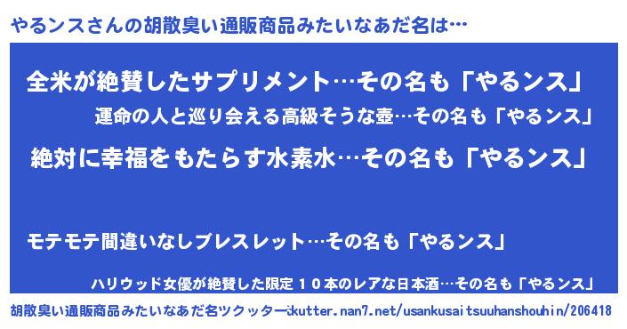 | ヘコむあだ名 | 『やるンス(苦笑)』『やるを』『牛乳』 |