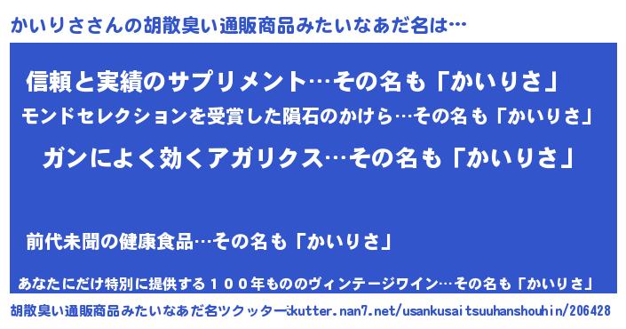 | ヘコむあだ名 | 『かい太郎』『かいりさ(笑)』『牛乳』 |