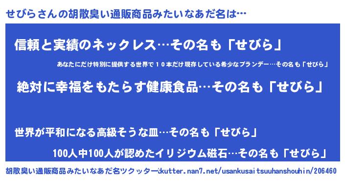 | 男性向けラノベタイトル風あだ名 | 『せびらという概念が存在しない退屈な世界 』 |