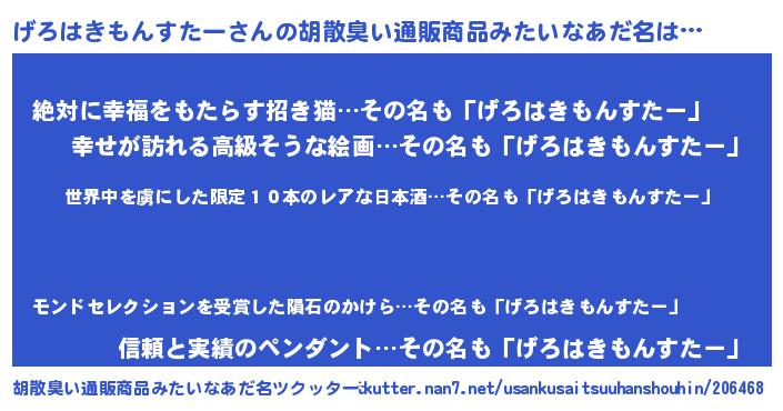 | 意味不明あだ名 | 『住所不定無職げろはきもんすたー(40歳)』 |