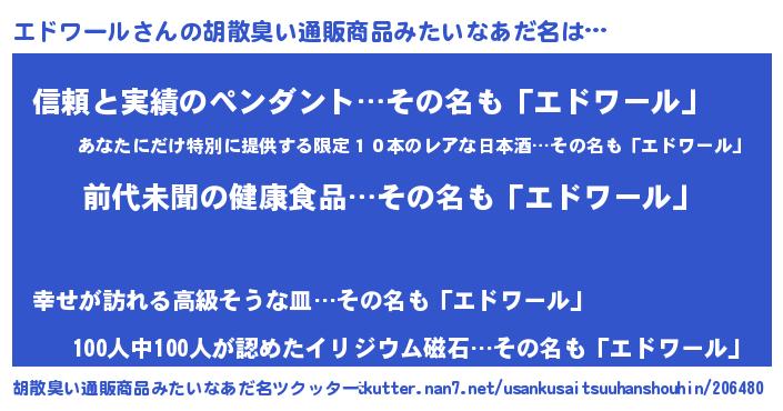 | ヘコむあだ名 | 『エドワール(笑)』『エドっちょ』 |