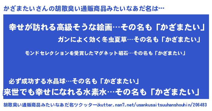 | ヘコむあだ名 | 『酢こんぶ』『かざまたい(震え声)』 |