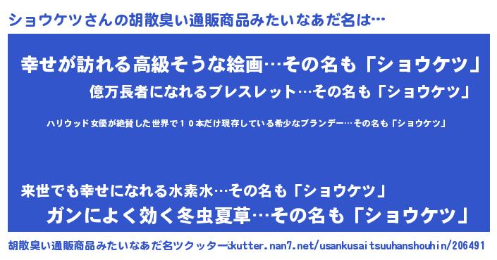 | 料理風あだ名 | 『ショウケツのカルパッチョ風』 |