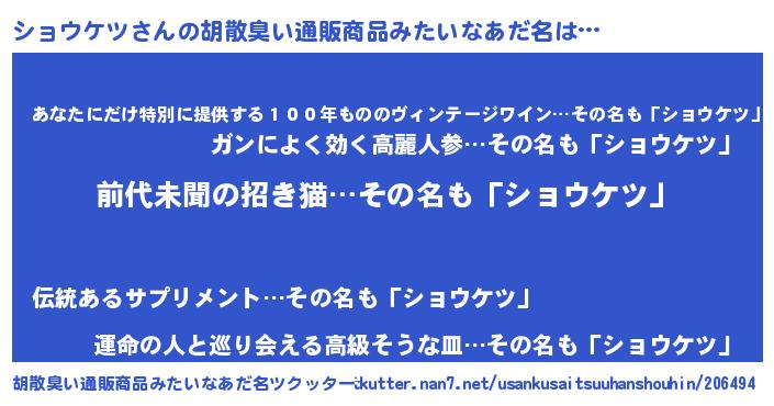| ヘコむあだ名 | 『ショウケツ(笑)』『酢こんぶ』 |