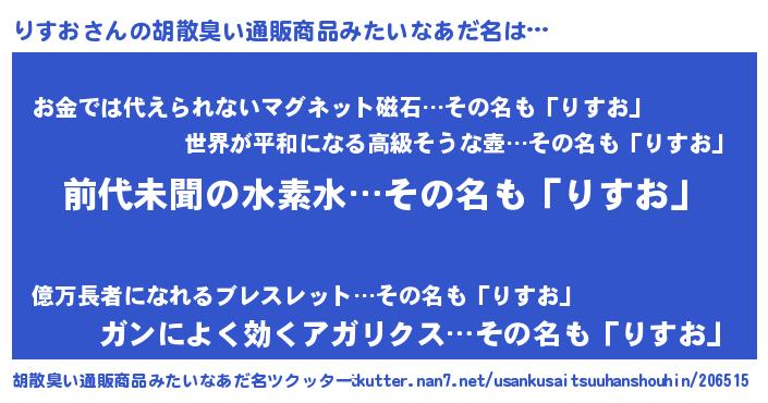 | ヘコむあだ名 | 『りすお(震え声)』『豆乳』 |
