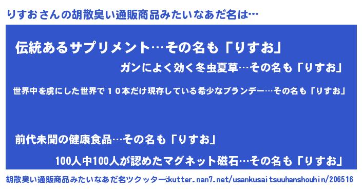 | 欧米人風あだ名 | 『りすお・ステッグマイヤー』 |