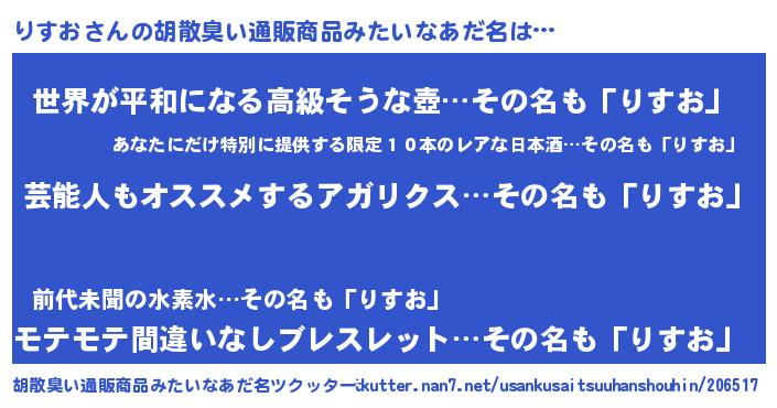 | 欧米人風あだ名 | 『ケンブリッジりすお』『マイケルりすお』 |