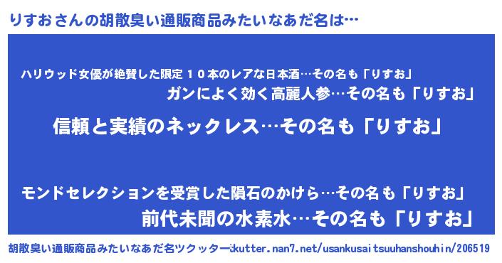 | 意味不明あだ名 | 『とにかく怪しいりすお』『自称りすお』 |