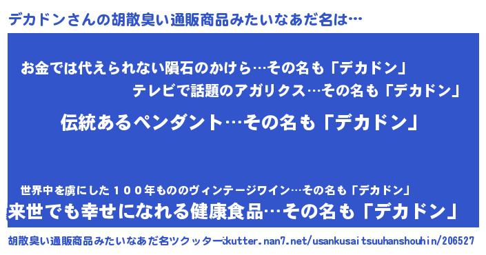 | 男性向けラノベタイトル風あだ名 | 『デカドンの嫁は女の子じゃないと思った?』 |