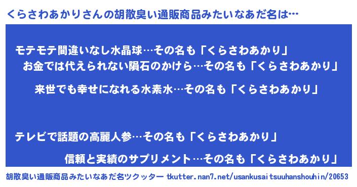 | 肩書あだ名 | 『くらさわあかり中将』 |
