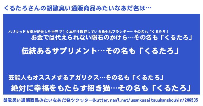 | 男性向けラノベタイトル風あだ名 | 『ダンジョンにくるたろを求めるのは間違っているだろうか』 |