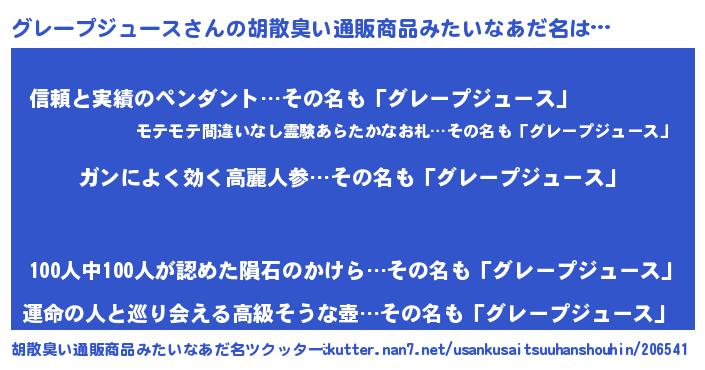 | 女子向けラノベタイトル風あだ名 | 『グレープジュースなんてお断りですっ。』 |