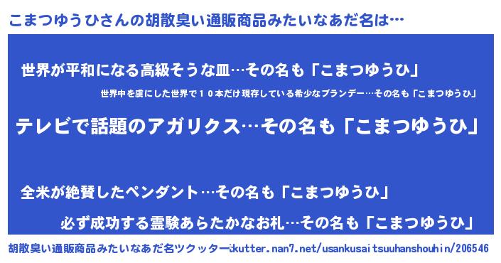 | 意味不明あだ名 | 『自称こまつゆうひ』 |