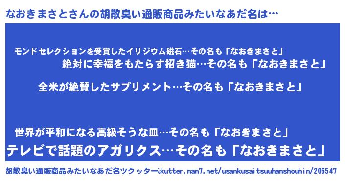 | ヘコむあだ名 | 『なおお』『なおきまさと(笑)』 |