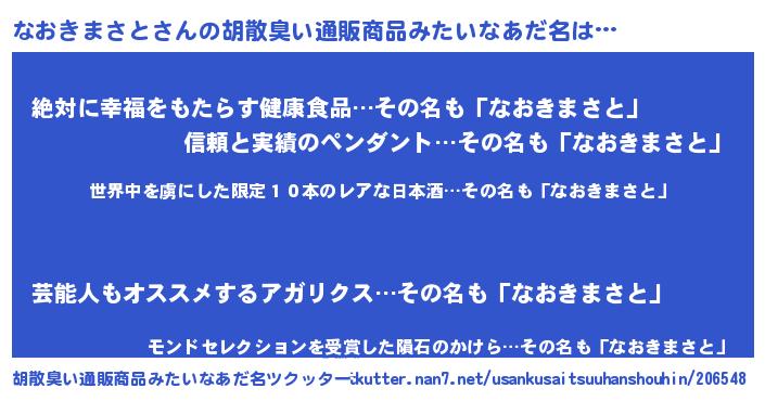 なおきまさとさんの胡散臭い通販商品みたいなあだ名をツクッター!