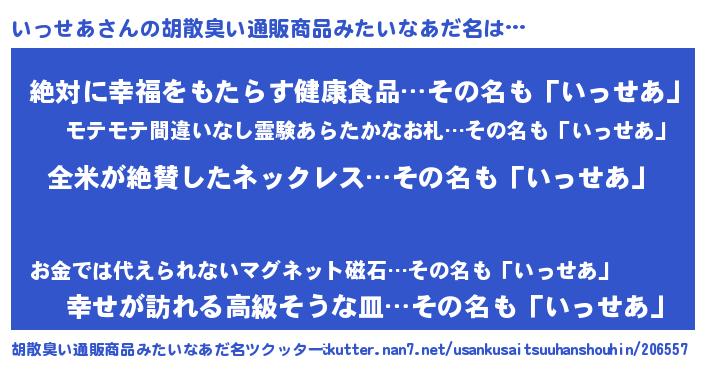 | ヘコむあだ名 | 『いっっぺ』『いっせあ(苦笑)』 |