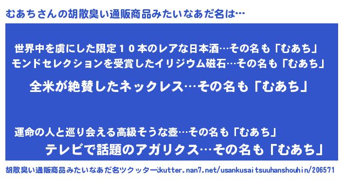 | 意味不明あだ名 | 『とにかく怪しいむあち』『自称むあち』 |