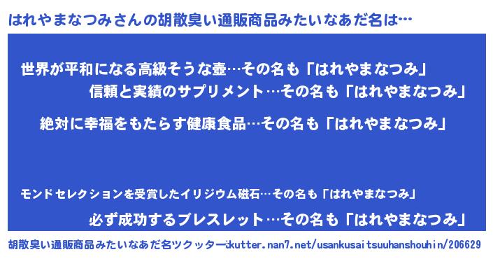 | 男性向けラノベタイトル風あだ名 | 『はれやまなつみという概念が存在しない退屈な世界 』 |