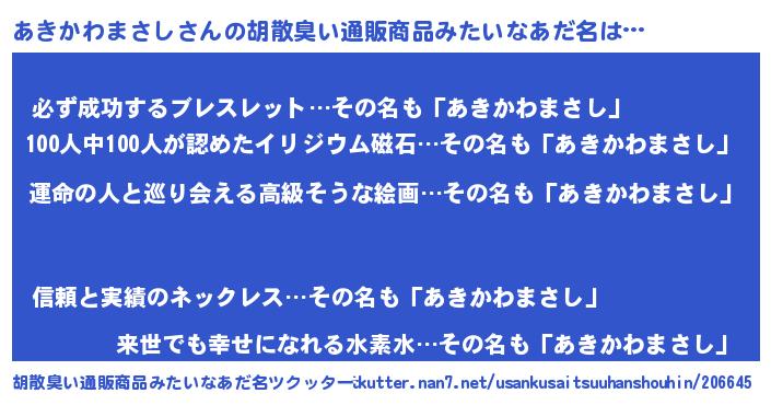 | 意味不明あだ名 | 『ニラ科あきかわまさし属』 |