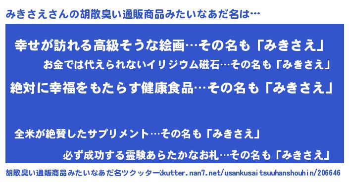 | 男性向けラノベタイトル風あだ名 | 『みきさえという概念が存在しない退屈な世界 』 |
