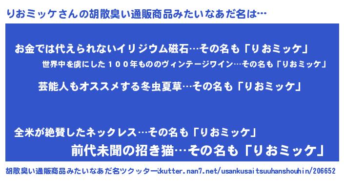 | 意味不明あだ名 | 『自称りおミッケ』『永久保存りおミッケ』 |
