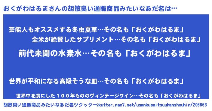 | 意味不明あだ名 | 『永久保存おくがわはるま』 |