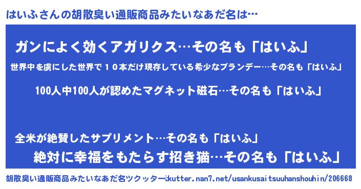 | ヘコむあだ名 | 『はいふ(小並感)』『はいっちょ』 |