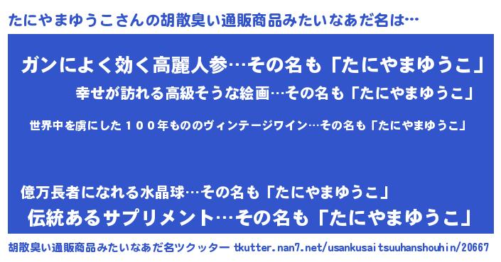 | 意味不明あだ名 | 『住所不定無職たにやまゆうこ(1歳)』 |
