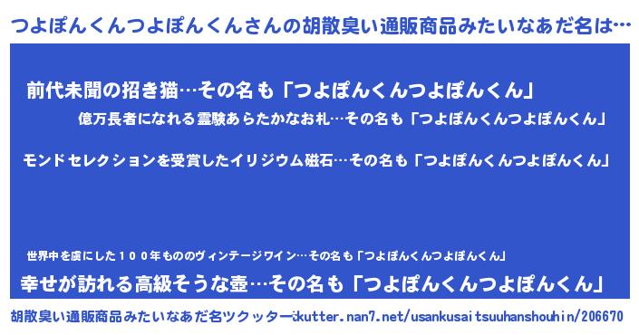 | 意味不明あだ名 | 『眠気覚ましガムつよぽんくんつよぽんくん味』 |