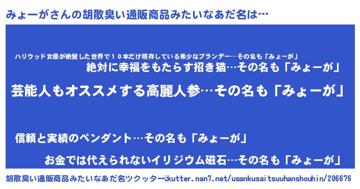 | ヘコむあだ名 | 『みょーが(笑)』『みょぷりん』 |
