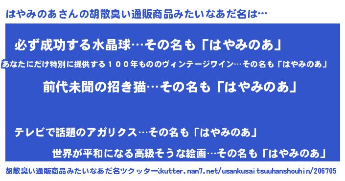 | 恥ずかしいあだ名 | 『はやちん』『プリティーはやみのあ』 |