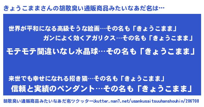 | 女子向けラノベタイトル風あだ名 | 『きょうこまま姫と円卓の騎士』 |