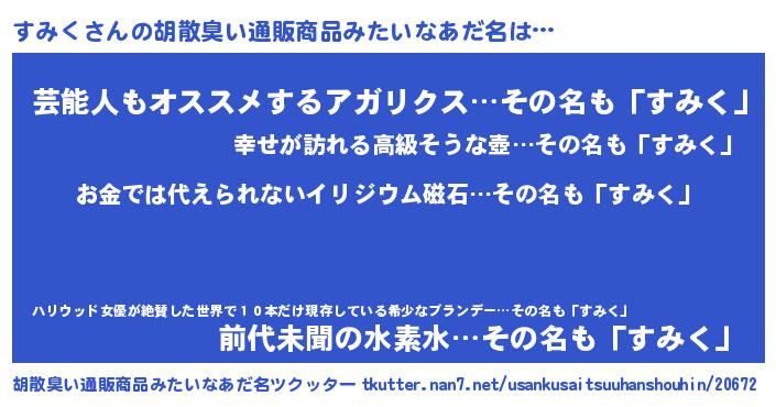 | ヘコむあだ名 | 『すみく(爆)』『酢こんぶ』 |