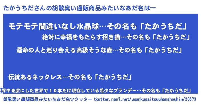 | 意味不明あだ名 | 『たかうちだフォーエバー』 |