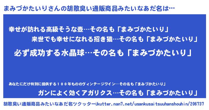| 男性向けラノベタイトル風あだ名 | 『まみづかたいりの憂鬱』 |